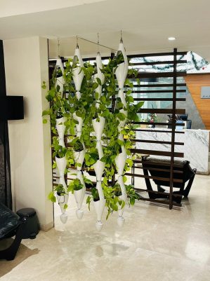 Sleek vertical stacked pods for modern indoor plant styling.